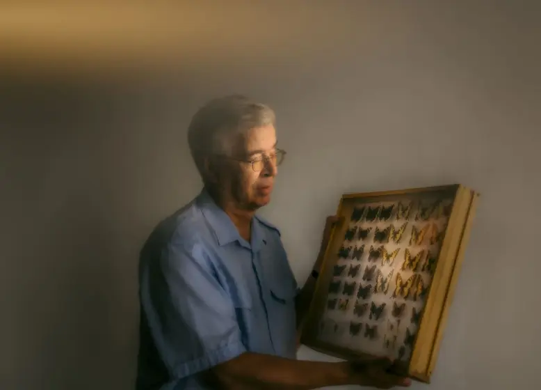 – Juoksin veljieni Karin ja Jounin kanssa kesäisin perhoshaavien kanssa pitkin pihapiiriä, peltoja ja niiden pientareita. Toisinaan Riitta-siskokin oli mukana. Kun saimme saaliksemme harvinaisen perhosen, olimme aivan haltioissamme, Malmivaara muistelee.